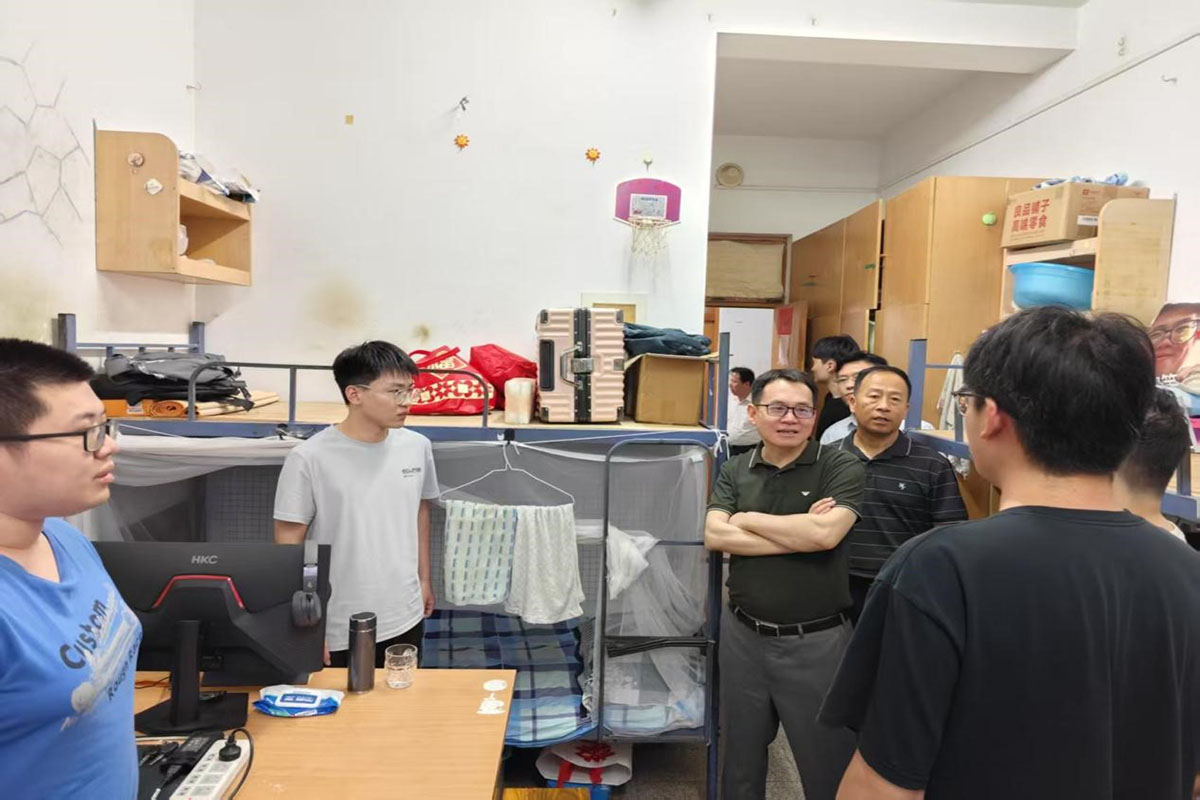 在7号宿舍楼,洪俊杰细致入微地询问了学院毕业生在校期间的学习情况,特别关注每位同学的就业选择与发展规划。得知大家有的考研升学、有的考上选调生,洪俊杰非常欣慰,对他们取得的优良成绩表示热烈祝贺,并勉励大家脚踏实地、扎实前行,胸怀崇高理想,再攀人生高峰。