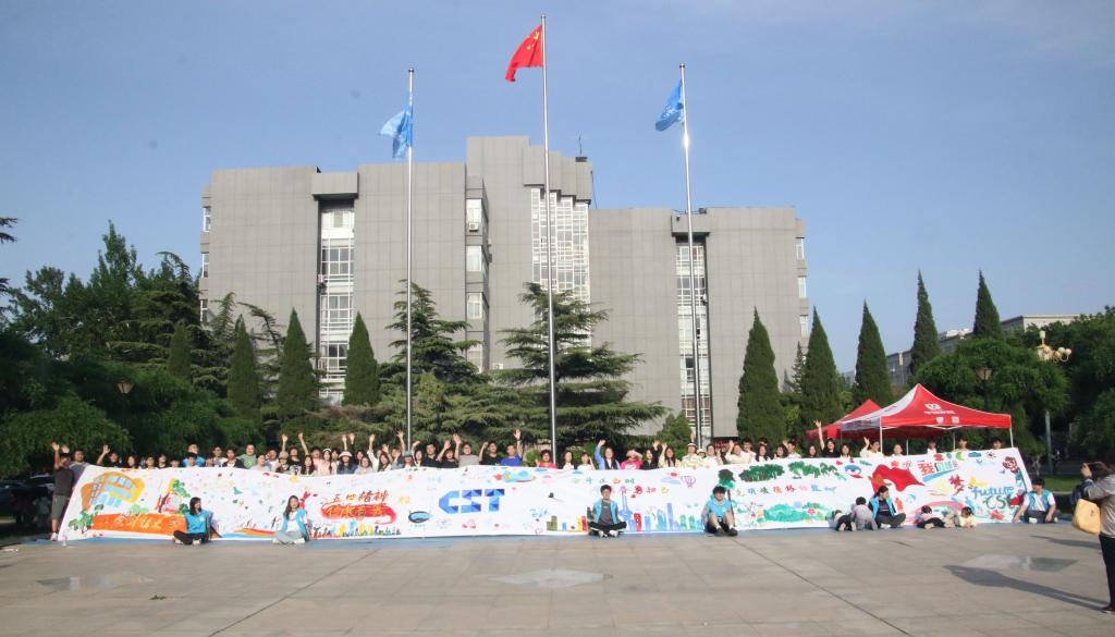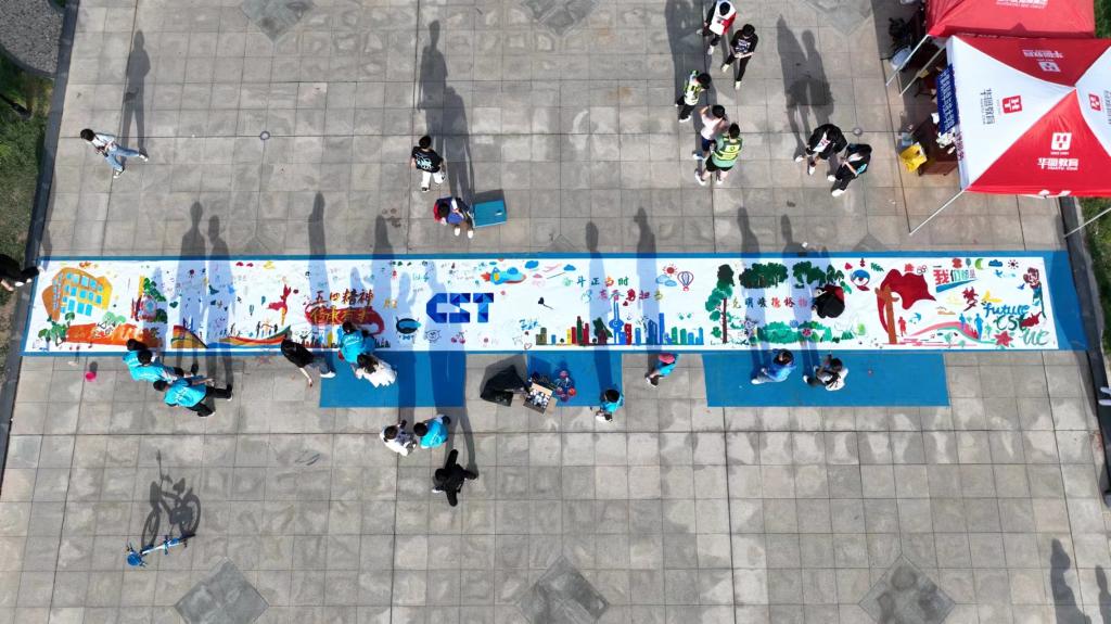 计算机科学与技术学院组织学院师生在燕山校区喷泉广场开展了一场别开生面、色彩纷呈的“绘梦五四共筑青春巨画”活动。