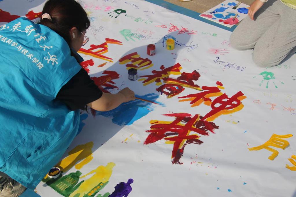 学院党委书记杨春丽,学工办主任任楠,团委书记李晨露,辅导员门晓慧和学院教师代表、全体学生均参与了此次活动,热情投入。大家齐心协力,接过画笔,一笔一划地勾勒出这幅富有生命力与创造力的青春画卷,让五四精神在笔尖流转,于画面中绽放。