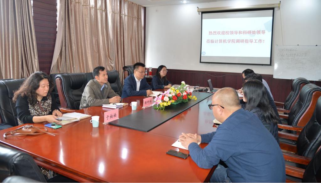 10月21日上午,副校长谢申祥就提升科学研究工作来计算机科学与技术学院进行调研指导。科研处处长马恩涛,副处长于楠楠、孔振焕参加调研,会议由马恩涛主持。学院党政领导班子、办公室、教师代表参加了调研会。