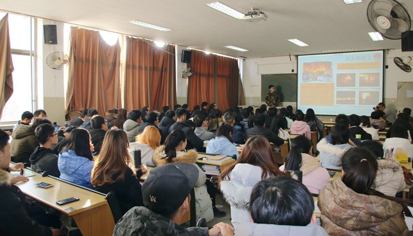 消防教育专题讲座暨消防疏散演练活动在燕山校区举行,济南市消防支队法制科参谋张慧向捕鱼游戏