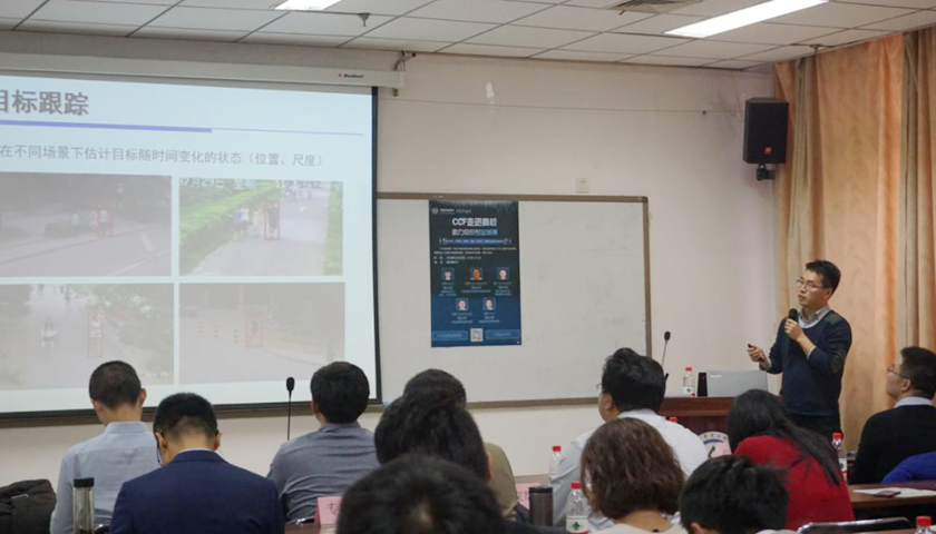 第四位报告专家是来自中国科学院自动化研究所的张天柱博士,他的报告题目为:目标跟踪算法研究进展。张博士提到目标跟踪是计算机视觉领域的热门研究方向之一,同时在产业界也具有广阔的应用前景。他首先带领大家回顾目标跟踪的研究进展,然后介绍一些代表性方法,如粒子滤波、基于分类器目标跟踪、稀疏跟踪、基于深度学习跟踪,及相关滤波等,最后介绍了团队的相关研究成果。
