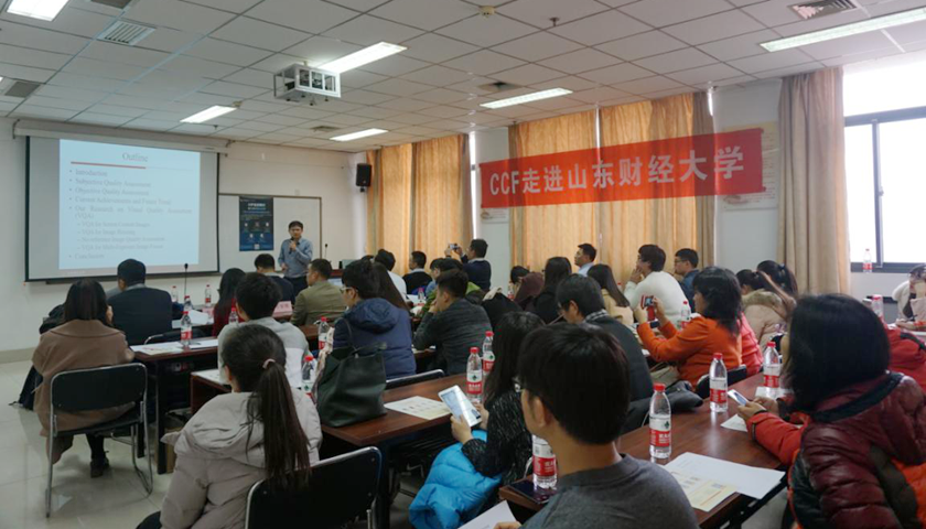 2018年11月30日,“中国计算机学会CCF走进高校”活动在我校燕山校区逸夫楼举行。本次活动邀请了江西财经大学信息管理学院方玉明教授、中国科学院计算技术研究所王瑞平研究员、中国科学院自动化研究所樊彬博士、中国科学院自动化研究所张天柱博士以及南京大学软件学院任桐炜博士等五位专家出席活动并做了精彩报告。报告会还邀请了山东大学张伟教授、泰山学院张茜教授、山东大学陈振宇教授、山东大学聂礼强教授以及山东师范大学李登旺教授作为嘉宾主持。计算机科学与技术学院教师和研究生参加了此次活动。