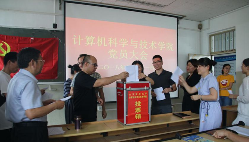 计算机科学与技术学院新一届党委委员。会后,新一届党委委员召开了第一次委员会议,并进行了各委员的分工。在等待计票过程中,大会审议并通过了党委工作报告和近4年党费收缴使用情况报告。