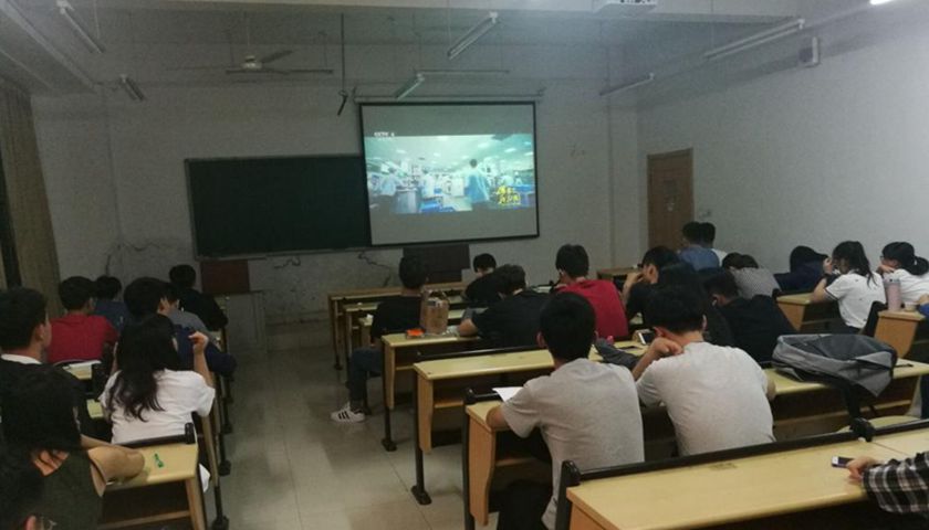 举行了特色晚自习活动,由各班班长组织放映电影《厉害了,我的国》,全体同学入座观看。