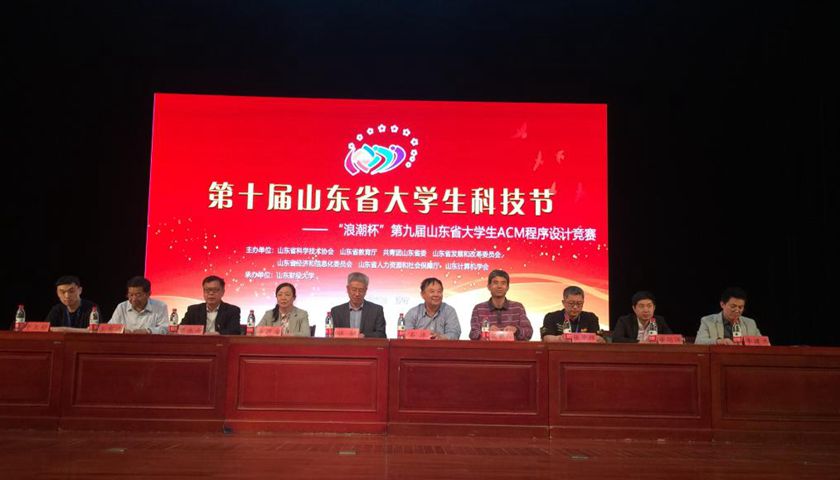 2018年5月5日,由山东省科学技术协会、山东省教育厅、共青团山东省委、山东发展和改革委员会、山东省经济和信息化委员会、山东省人力资源和社会保障厅和山东计算机学会主办,我校承办的第十届山东省大学生科技节——“浪潮杯”第九届山东省大学生ACM程序设计竞赛在我校舜耕校区胜利开幕。来自山东省39所高校、261支队伍的783名学生参加了比赛,63名教练、14名各高校嘉宾共同见证了比赛的过程。