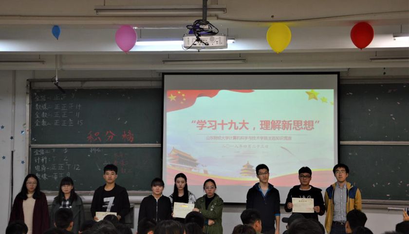 于圣井校区B5301成功举办“学习十九大,理解新思想”知识竞赛。17级每班推选三名同学代表本班参加比赛,学院学生会部分学生干部作为评委参与了本次评选。