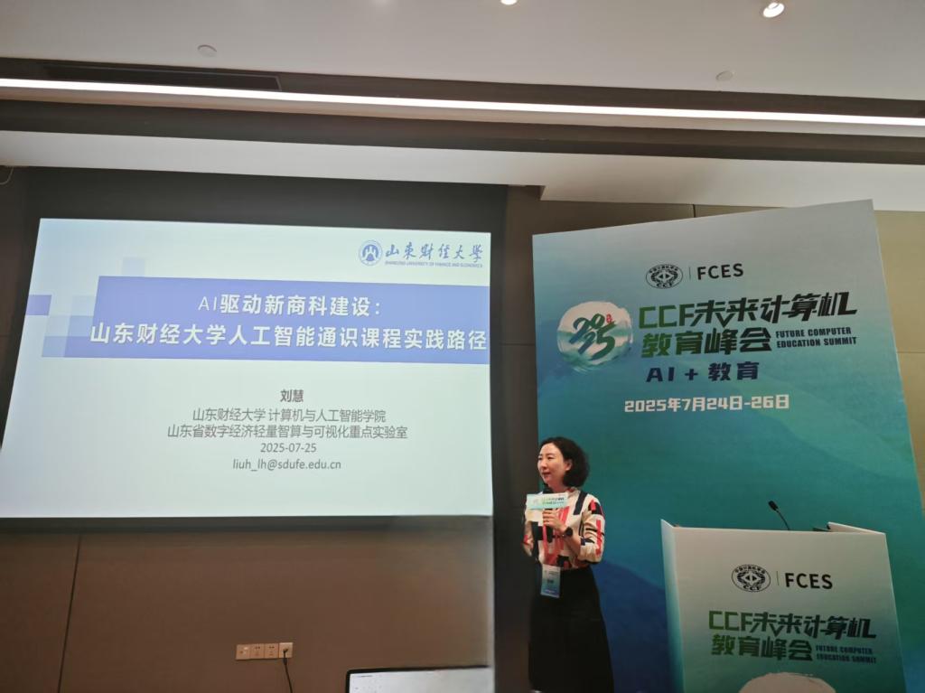 7月24日至26日,由中国计算机学会(CCF)主办,CCF教育工委和湖南大学承办的“第九届CCF未来计算机教育峰会”(FCES2025)在湖南长沙举行。峰会期间,以“人工智能赋能财经类院校人才培养”为主题的分论坛同期举办,该论坛旨在搭建国内财经类高校计算机学院领导、教育专家和行业代表之间的交流平台,共同探索人工智能技术如何有效推动教育教学改革与人才培养模式升级,院长刘慧、副院长崔超然应邀出席。