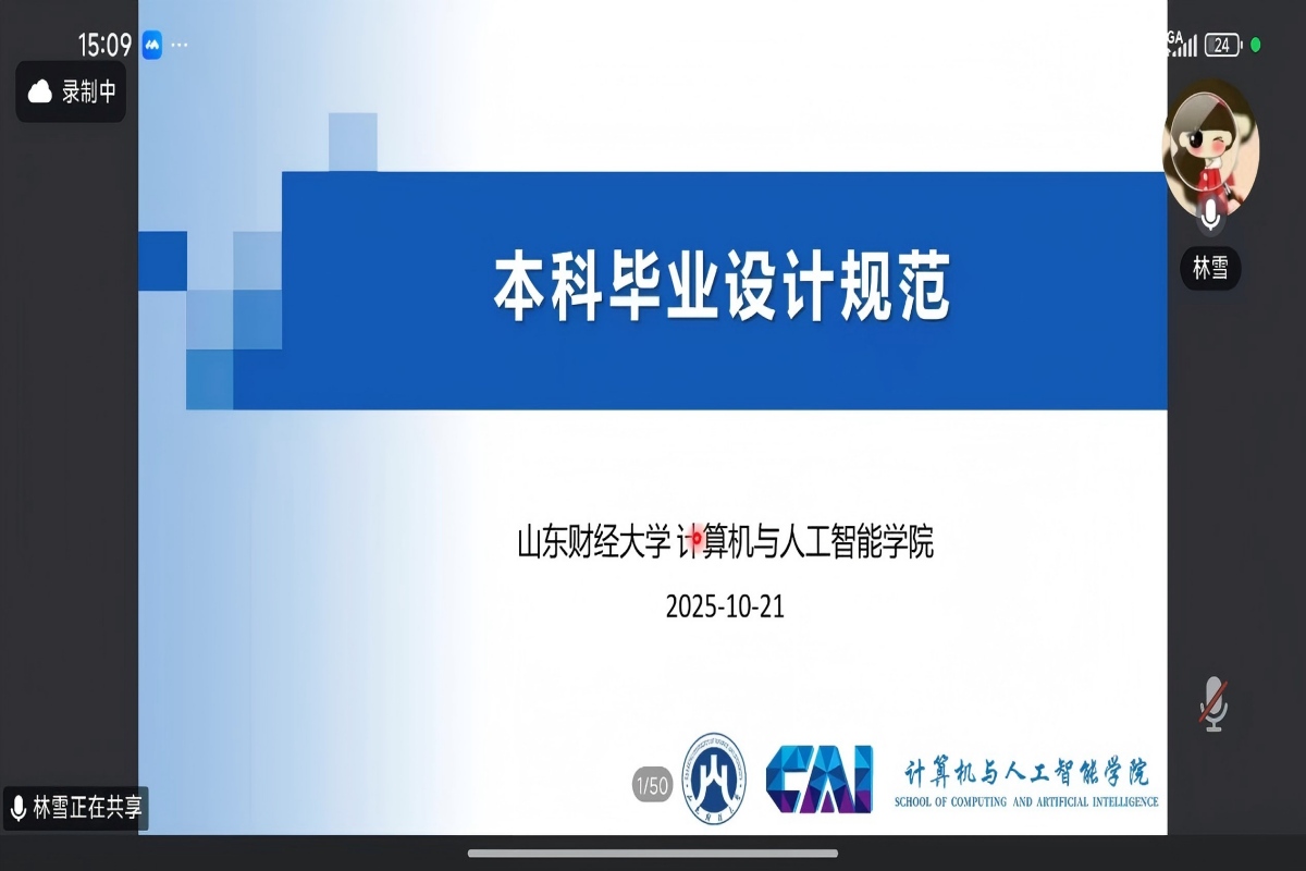 副院长崔超然强调了修满毕业学分与高质量完成毕业论文的重要性,并敦促全体同学予以高度重视,认真规划学业进程,避免因学分或论文问题影响顺利毕业;李梦飞就毕业学分构成、重修政策、毕业实习的具体要求及毕业设计的流程节点等关键事项,向同学们进行了详尽说明与提醒,确保每位学生都清晰了解本科毕业所需要的各项标准和工作流程;林雪以“本科毕业设计规范”为题,向大家系统讲解了毕业论文的选题原则、核心内容要求、学术规范及标准格式等重要问题,并结合往届实例,分享了诸多宝贵建议,为同学们接下来的论文写作提供了清晰的指引。