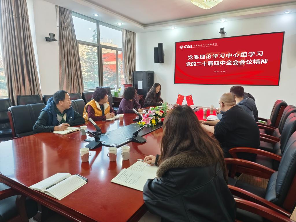 12月10日,学院党委理论学习中心组召开专题学习会,集中学习党的二十届四中全会会议精神,研究部署贯彻落实举措。党委理论学习中心组成员参加学习,学院党委书记杨春丽主持会议并领学。
