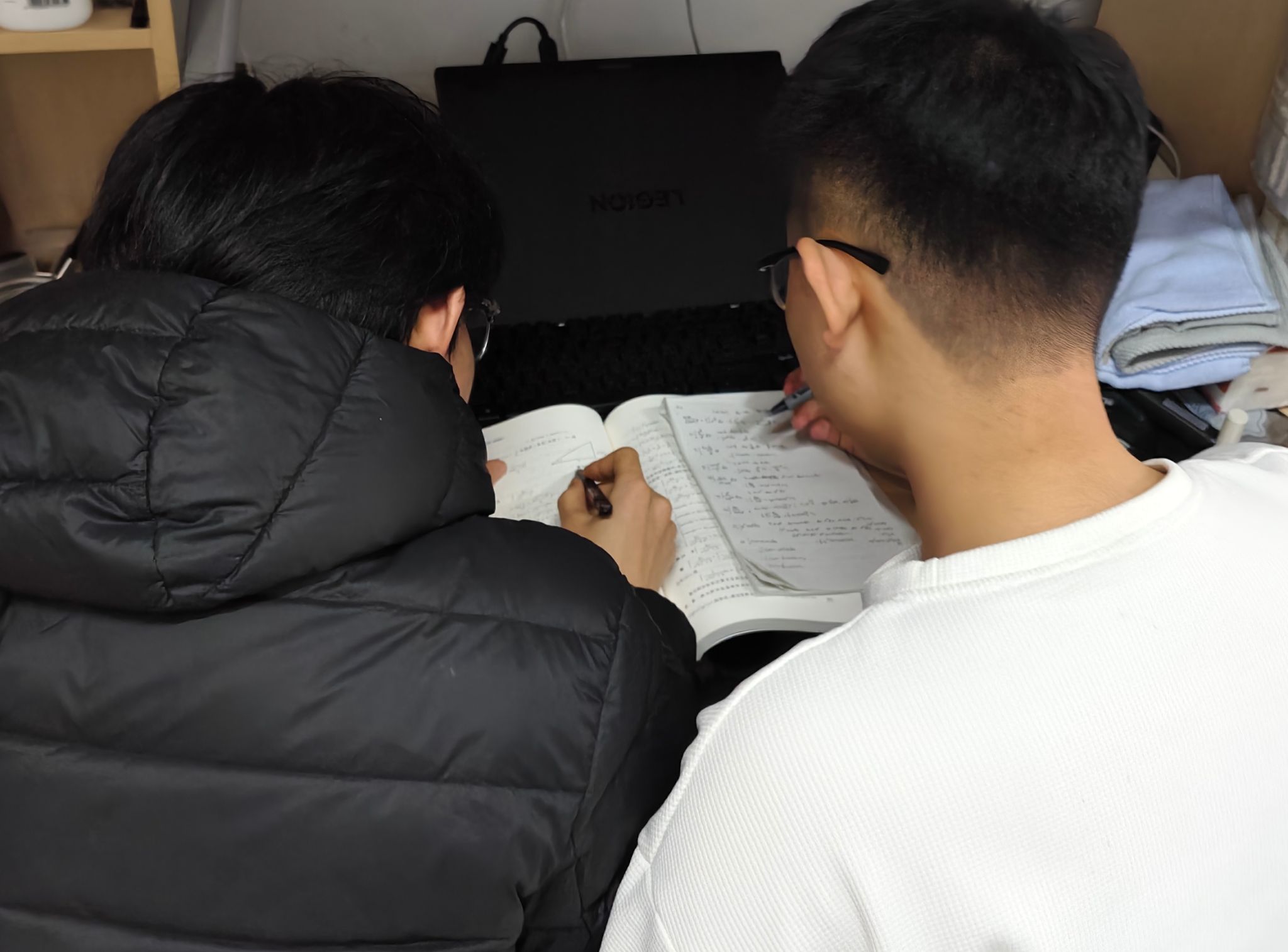 帮扶过程中,结对同学利用课余时间进行了形式多样的个性化辅导。帮扶同学倾囊相授,不仅帮助梳理课程的知识框架、解析重点难点,还分享了高效的学习方法与备考技巧。在C语言的学习中,帮扶同学通过画图讲解指针、手写代码示例等方式,让原本晦涩难懂的知识点变得清晰易懂;在高等数学的辅导中,通过错题分析和思路引导,帮助同学攻克了函数与极限的难关。