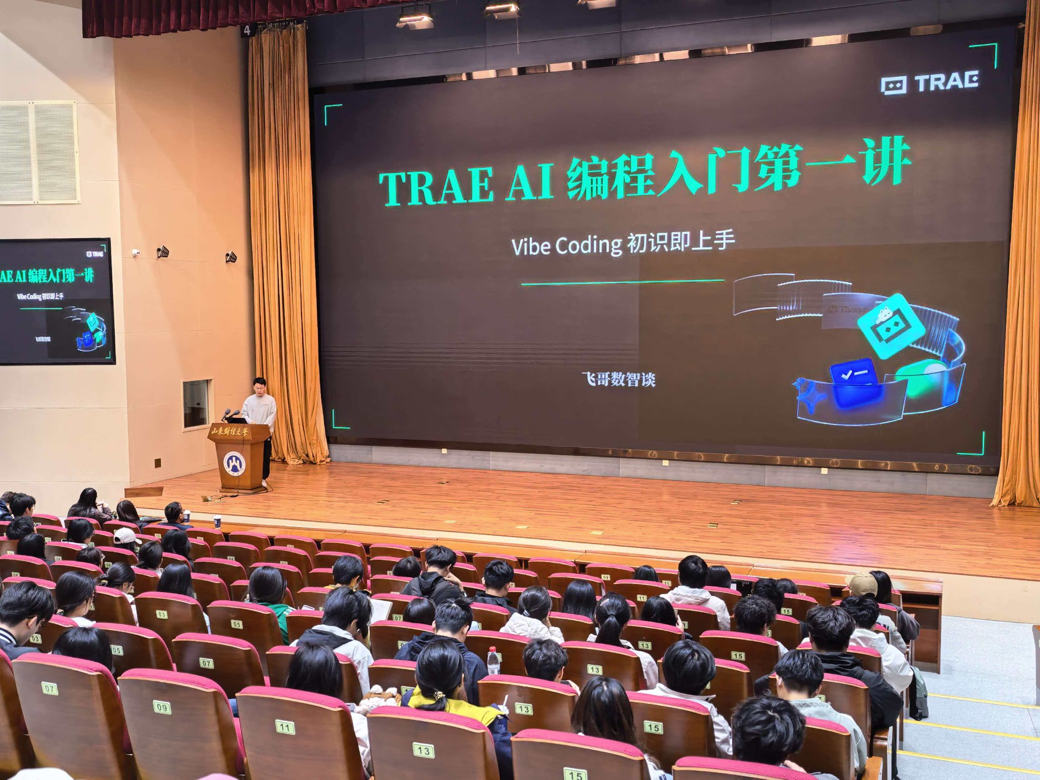 现场演示环节,主讲人以“开发一个聊天智能体网页”为例,带领同学体验完整流程:用自然语言描述需求,TRAE自动生成代码,几分钟呈现可交互网页,再迭代优化。“不要想着一蹴而就,先出来再优化。”AI的价值不只在首次生成,更在连续迭代。