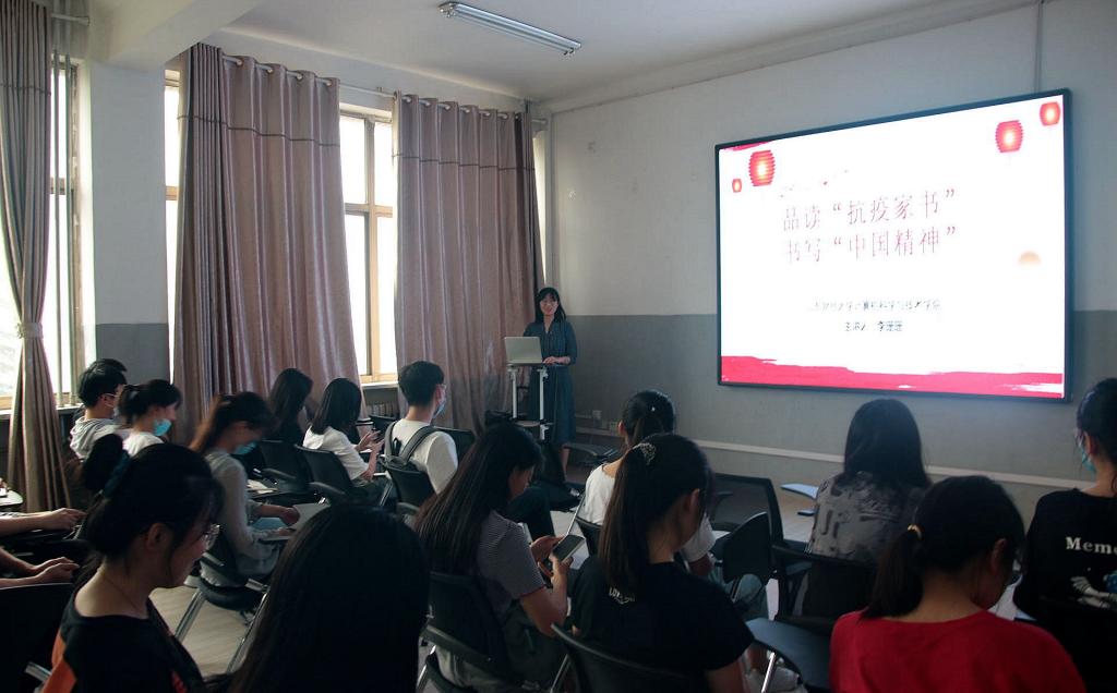 “烽火连三月,家书抵万金”,课上主讲人以杜甫《春望》中一句思乡寄情的诗词引入“抗疫家书”这一话题。用视频、朗诵等多种形式展现了在突如其来的新冠肺炎疫情中,来自不同岗位、年龄和背景下的主人公写给家人的三封抗疫家书,通过情景教学法引发学生思考家书背后的共同情感是家国情怀、精神食粮是抗疫精神。紧接着将“抗疫家书”与“红色家书”进行隔空对比引出“中国精神”的概念以及内涵。通过讲述在历史长河中涌现出的诸多时代精神,进一步揭示出抗疫精神和中国精神的关系——抗疫精神是新时代中国精神的生动体现,是继承、亦是发扬。