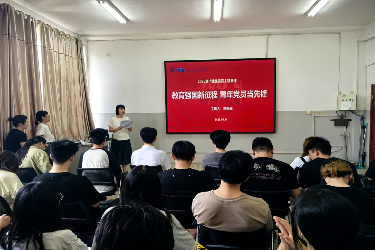 6月24日,在毕业生党员即将踏上新征程之际,学院学生第一党支部书记李珊珊以“教育强国新征程 青年党员当先锋”为主题,为全体毕业生党员讲授了一堂深刻而富有激情的专题党课。党课紧密结合习近平总书记关于《加快建设教育强国》的重要论述,号召青年党员勇担时代使命,在教育强国建设中争当先锋。