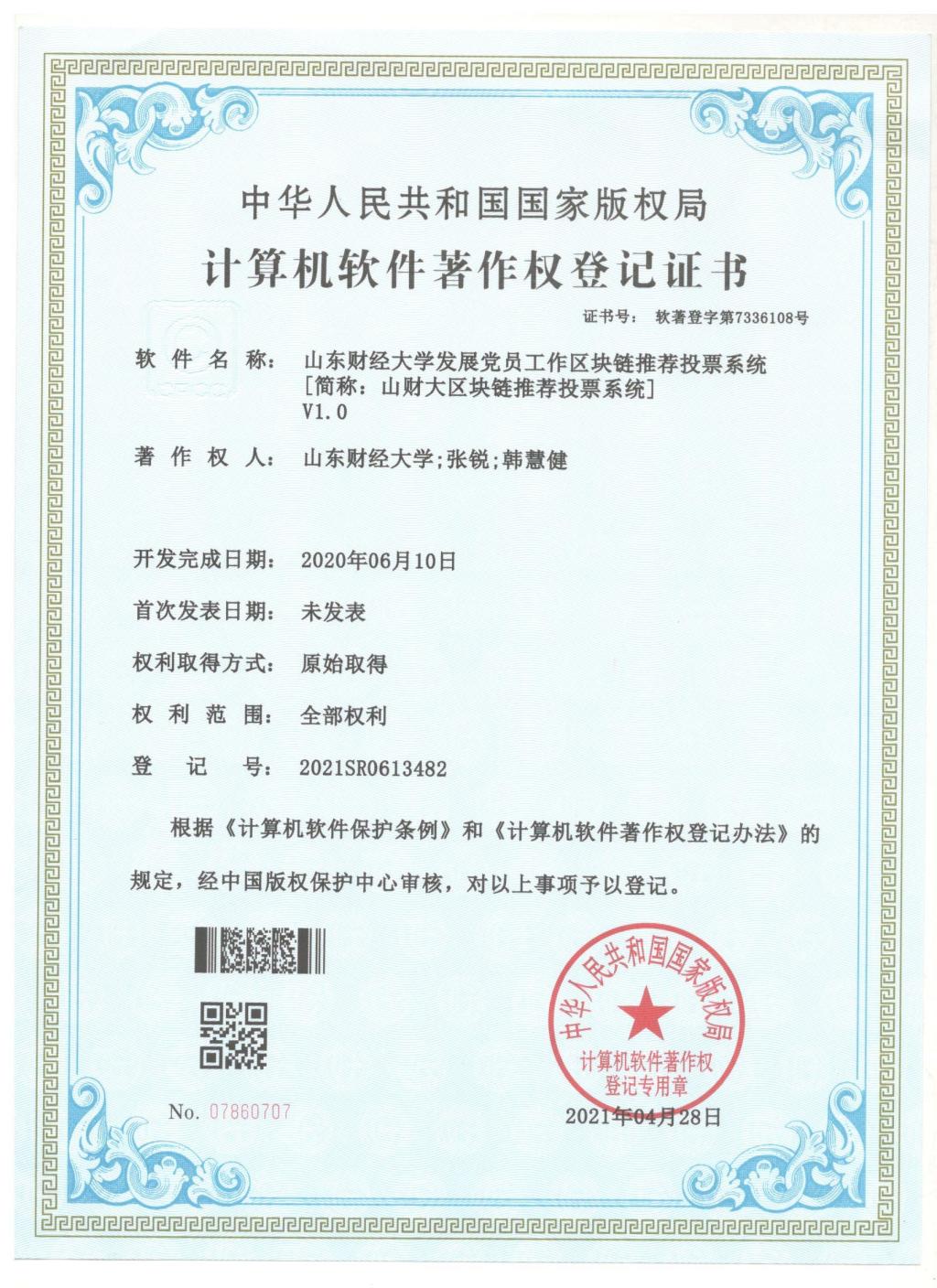 计算机科学与技术学院和阿里云计算有限公司设计开发“发展党员工作区块链推荐投票系统”。